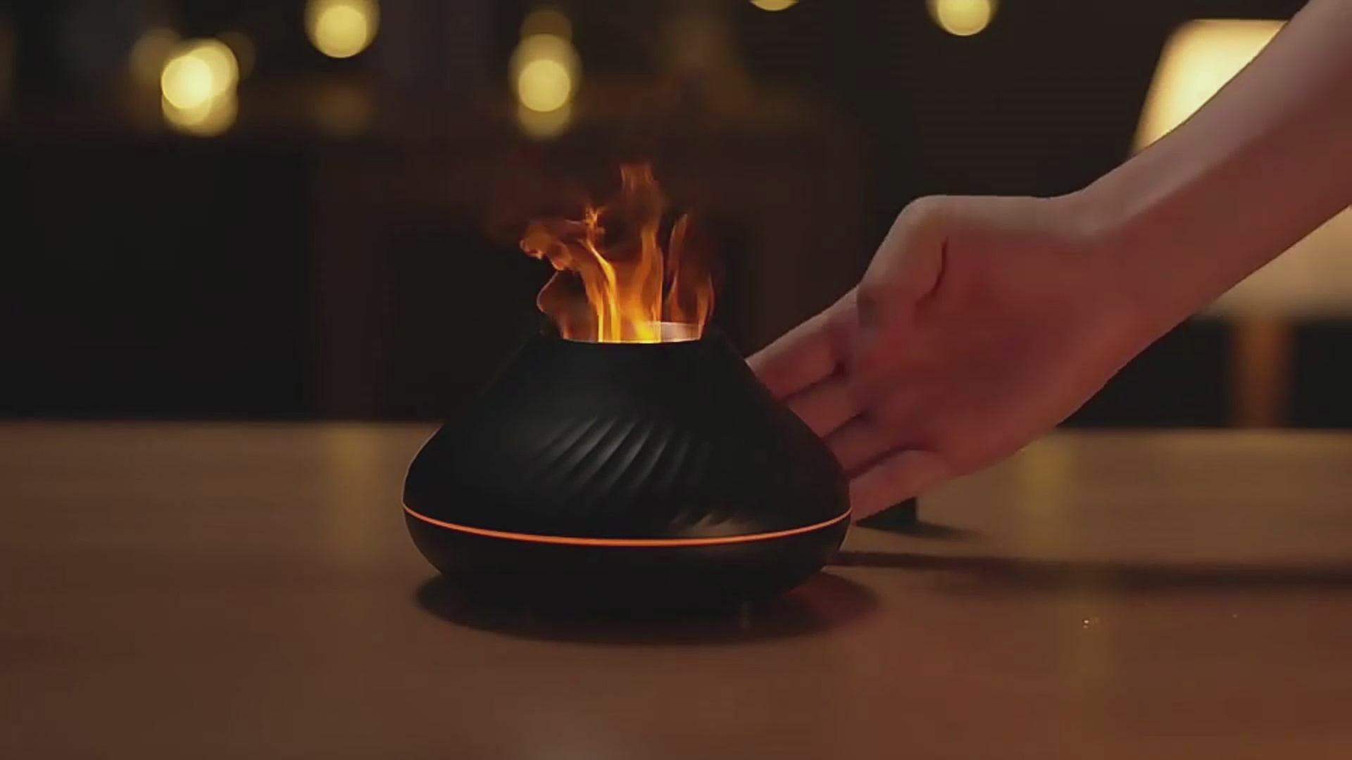 Newest RGB Flame Aroma Diffuser 130Ml 3d Colorful Flame Humidifier Fire Volcano Diffuser Flame